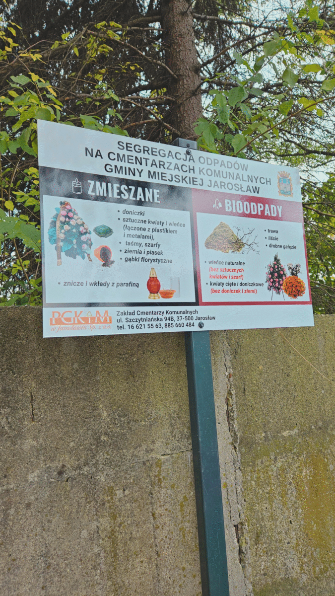 29 października 2025Nowe tablice informacyjne na cmentarzach komunalnych w JarosławiuZakończono montaż tablic informacyjnych dotyczących zasad segregacji odpadów. Tablice zostały ustawione na wszystkich cmentarzach komunalnych w Jarosławiu: