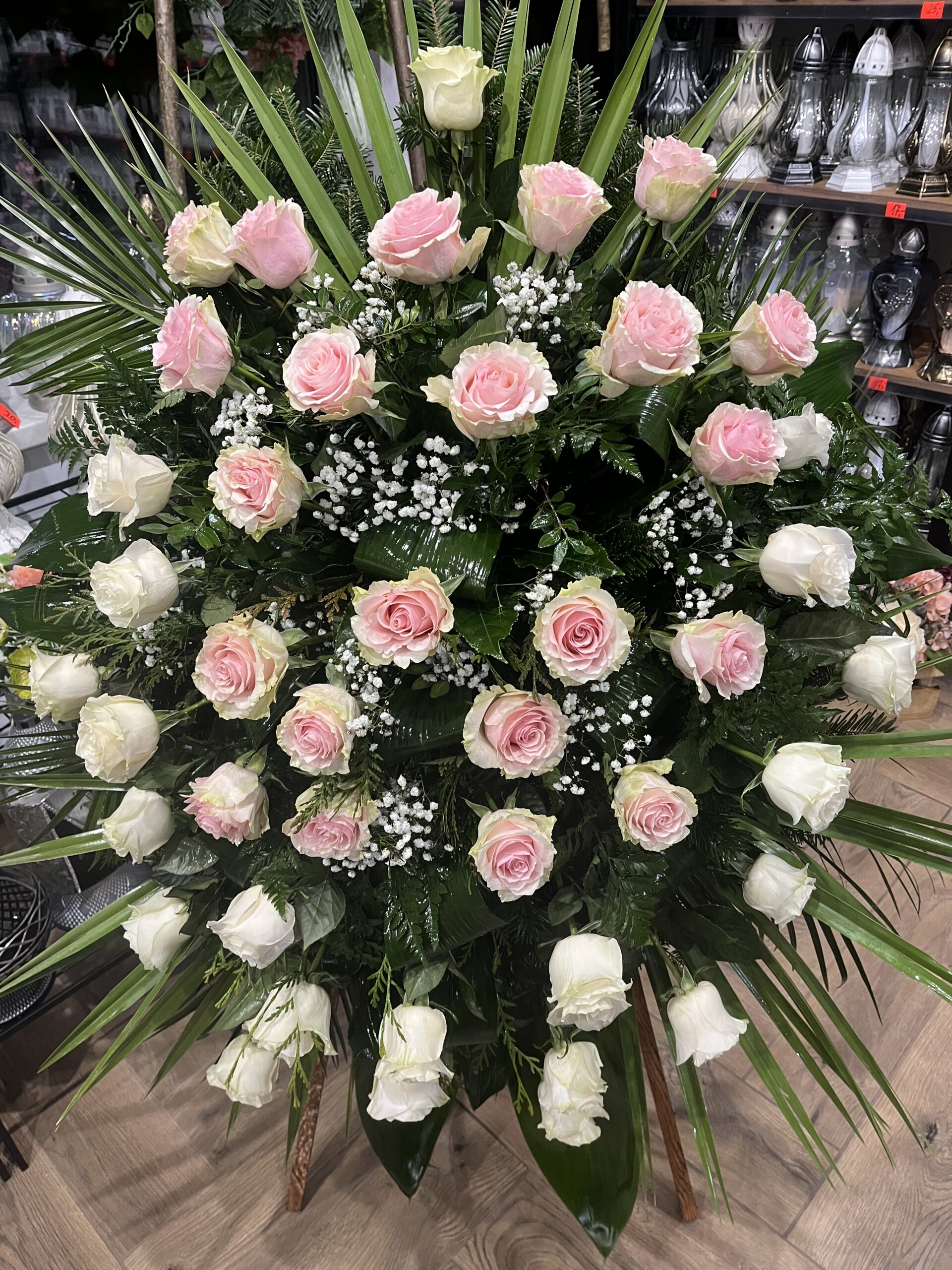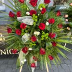 Punkt handlowy zlokalizowany przy głównej bramie cmentarza, oferujący bogaty wybór kompozycji florystycznych, w tym wieńce i wiązanki pogrzebowe.